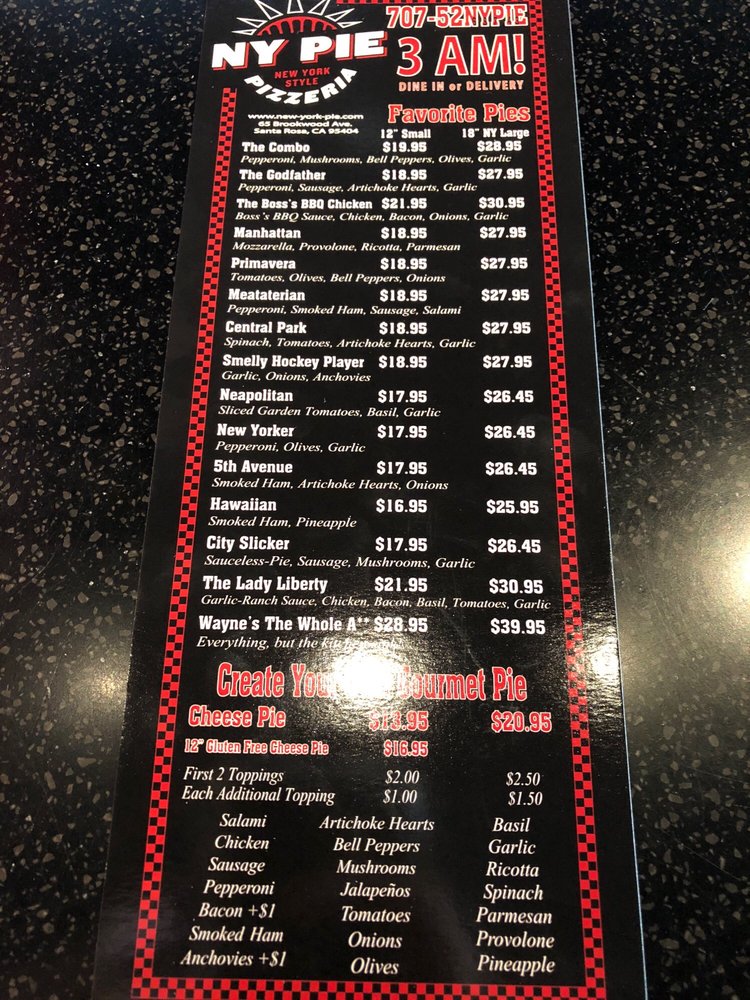 Welcome to NY Pie, where the essence of New York-style pizza comes to life in Santa Rosa, California! Nestled at 65 Brookwood Ave, this vibrant eatery offers a menu bursting with authentic Italian flavors, featuring an impressive array of pizza, salads, and wings. The standout is undoubtedly their pizza, crafted with fresh ingredients and a perfect balance of sauces, receiving rave reviews from locals craving that classic NY taste.